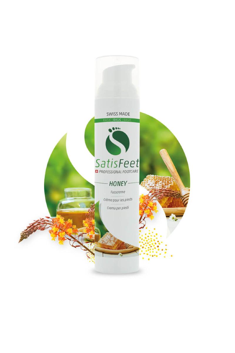 Beroligende hudpleiekrem til føttene med honning, som vil gjøre føttene og bena dine synlig glattere og huden mer smidig. Balansen mellom oppbygging og nedbrytning av hudens kollagen blir forbedret, og huden blir merkbart mykere og mer elastisk.